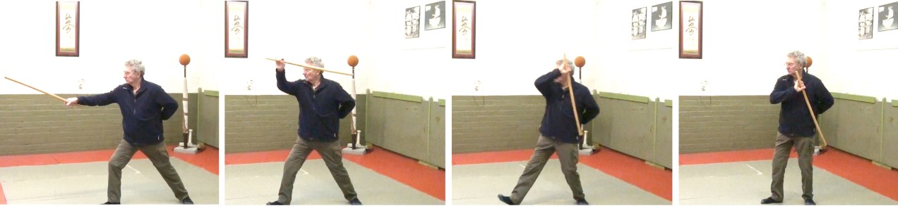 - Op het moment van impact wordt de laatste “klik” gegeven door een snelle polsrotatie, die de stok versnelt en de kracht concentreert op het doelwit.
