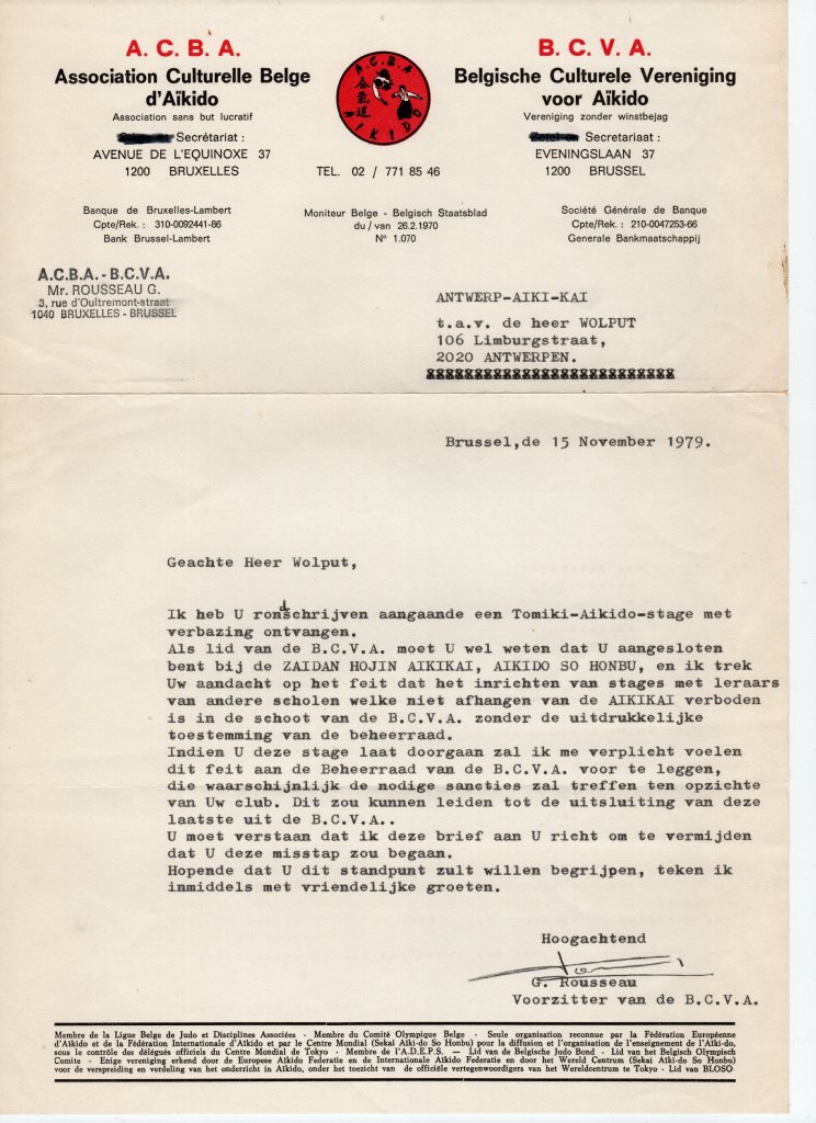 Toen de Aikido-club verhuisde naar de judoclub in de Van Wesenbeekstraat in Antwerpen, ontstond er een nauwe samenwerking met P.F. Beljaars (uit Tilburg) en Jacques Normand (uit Parijs).