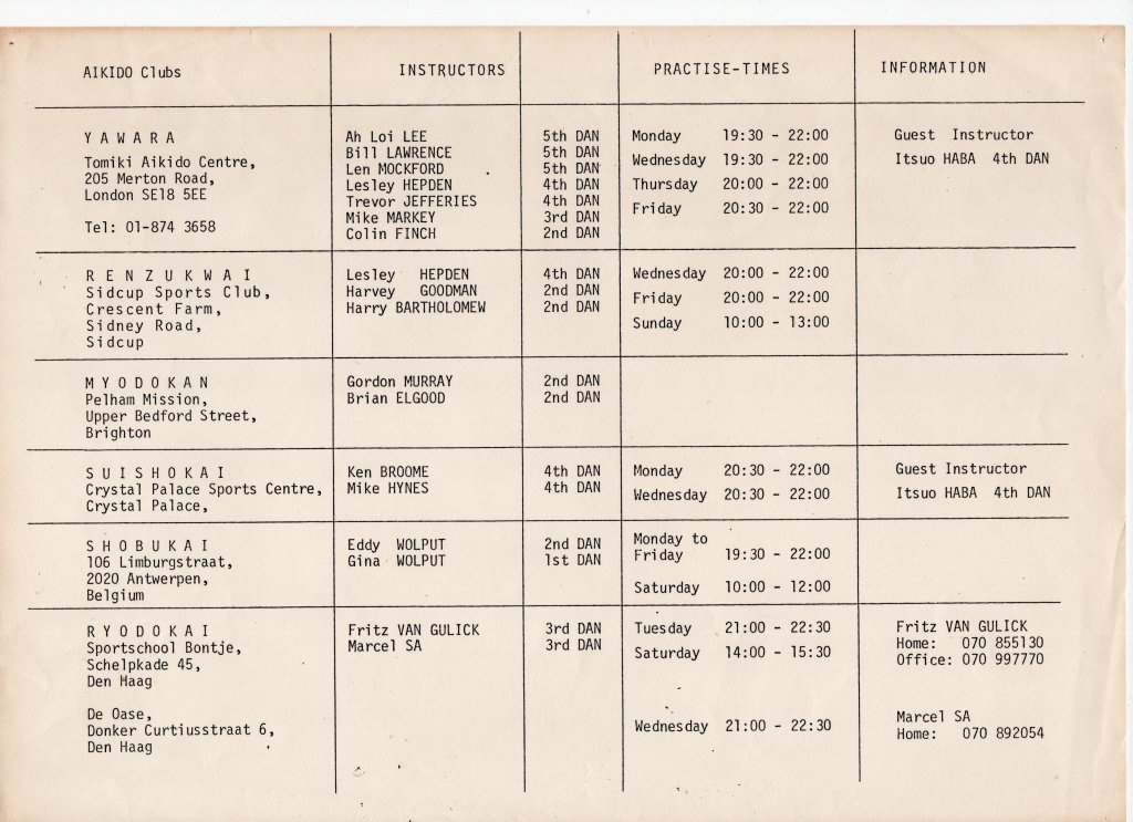 Geregeld kwam Itsuo Haba naar Belgie om de fijnere punten van het Toiki Aikido te doceren. Geregeld gingen we dan ook een introduktie doen in andere Belgische clubs en verenigingen.