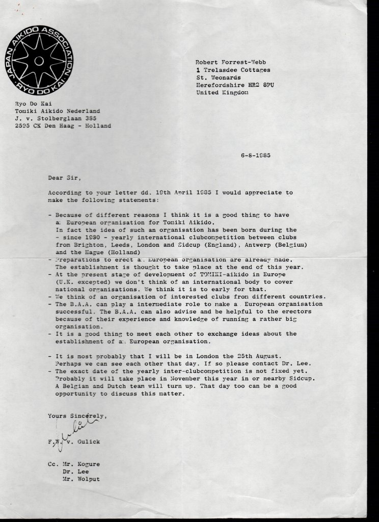 Opmerkelijk is dat ook de British Aikido Association (BAA) een poging ondernam om een Europese federatie op te richten, maar dan wel onder leiding van de BAA.