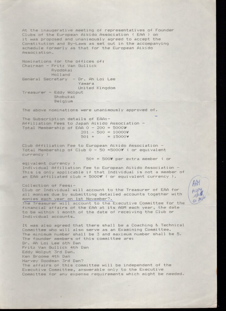 In november 1985 werd de European Aikido Association (EAA) officieel opgericht. De oprichters waren: